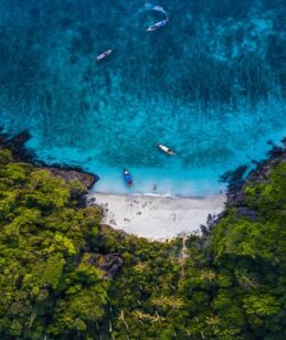 Stunning tropical island resorts surrounded by lush greenery and turquoise waters